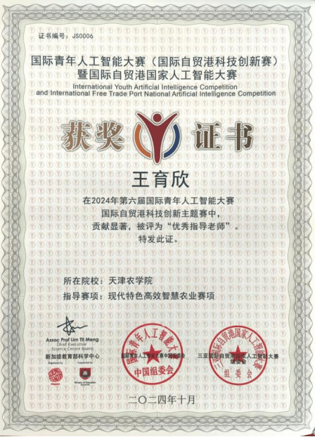 近日,我校计算机与信息工程学院师生在第六届国际青年人工智能大赛国际自贸港科技创新主题赛暨第二届国际自贸港国家人工智能大赛中国赛区选拔赛中表现突出,本次师生们共参加了海洋科学与深海科技、现代特色高效智慧农业两个赛项,由王育欣教授指导的6支队伍共斩获一等奖2项和二等奖4项的骄人成绩,携手共同挺进国际总决赛,王育欣教授被评为“优秀指导教师”。