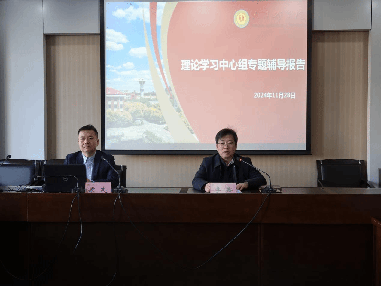 近日,校党委安排我校水产学院梁爽博士为校、院两级理论学习中心组作题为《天农助力“双碳”目标的路径:思考与实践》的专题辅导报告。会议由校党委书记李鑫主持,校党委副书记、校长金危危等校、院两级党委理论学习中心组成员参加,科技处、教务处、研究生院主要负责同志列席。