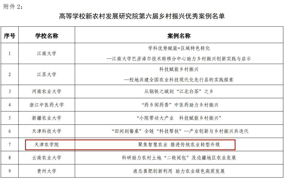 近日,我校数字乡村与智慧农业研发团队申报的《聚焦智慧农业 推进传统农业转型升级》赋能乡村振兴案例入选“高等学校新农村发展研究院第六届乡村振兴优秀案例名单”。