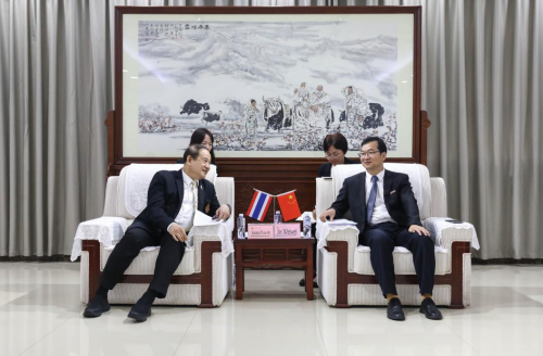 金危危对代表团一行的到来表示欢迎,介绍了我校的办学历史与发展成就。他指出,学校始终立足农业科技创新与乡村振兴战略,构建起以农学为主体、多学科协同发展的办学格局,植物学与动物学、农业科学进入ESI全球前1%,获批6个国家级一流本科专业建设点和17个省级一流专业,并建有40个省部级科研平台。学校积极拓展“一带一路”教育合作网络,自2019年与塔亚武里皇家理工大学合作建立“神农学院”以来,全力做好教学、管理等各项工作,推动中泰学生交换计划与双学位项目开展,共同培育具有国际视野的农业科技创新人才。依托“神农学院”建设平台,我校食品科学与生物工程学院同泰国塔亚武里皇家理工大学农业技术学院成功获批天津市政府“一带一路”项目“营养健康食品中泰联合研究中心”,并于2025年年初通过线上线下相结合的方式共同参加了天津市政府组织的项目启动仪式。