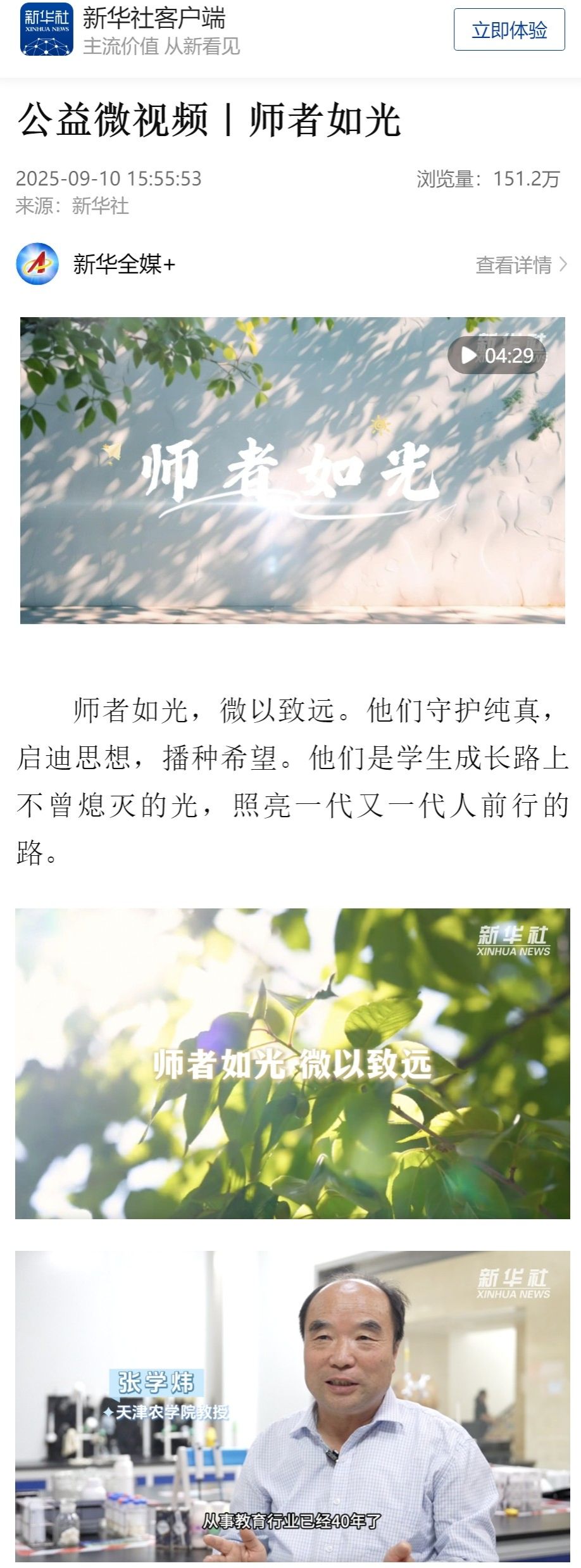 多家主流媒体在“教师节专题新闻”中报道我校张学炜老师教书育人工作