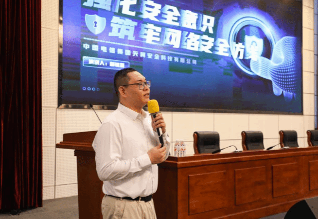随后,中国电信高级解决方案专家郝瑞辰作了题为《强化安全意识 筑牢网络安全防线》的专题讲座。通过“案例解析+有奖问答”的互动模式,生动解读《中华人民共和国网络安全法《中华人民共和国个人信息保护法》核心内容,现场师生积极参与知识竞答。