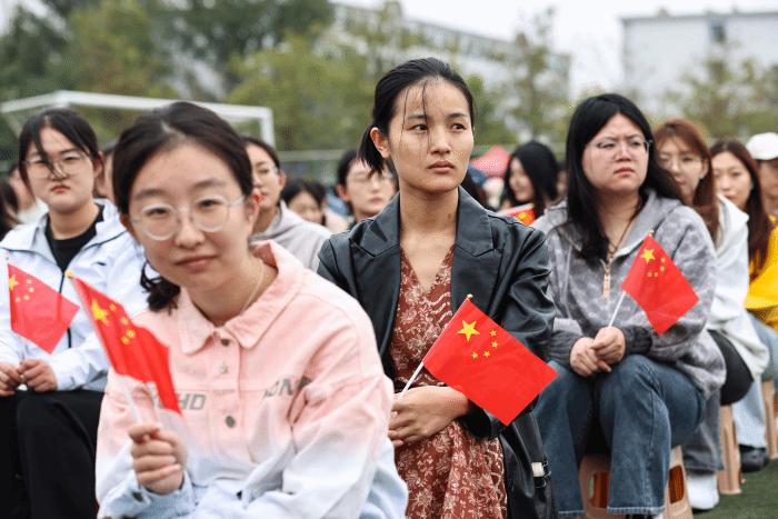 全体师生齐声高唱《歌唱祖国》