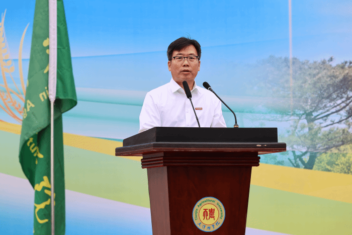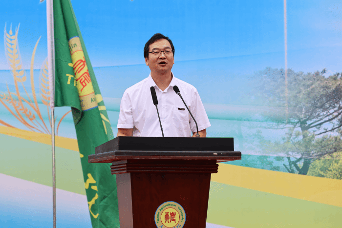 金危危首先向新入学本科生、研究生、预科生表示热烈的欢迎,并对培养他们的父母与师长致以衷心的感谢!并为新生讲授了意义重大的开学第一课。针对新生们即将展开的求学之旅,他提出了三点嘱托与期望:一是做一个刻苦努力的人,经历过天农洗礼后都能够多一份坚守,多一点努力,多一点激情,成长为踏实肯干的实干家。二是做一个敢于创新的人,开拓进取,扎根“三农”必然大有可为!三是做一个充满人格魅力的人,在学习生活中,同学们要不断强化自我认知,努力追求自我价值的实现。最后,寄语新生秉持“敏学切问、躬勤耕稼”的校训,创造出属于自己的卓越人生!