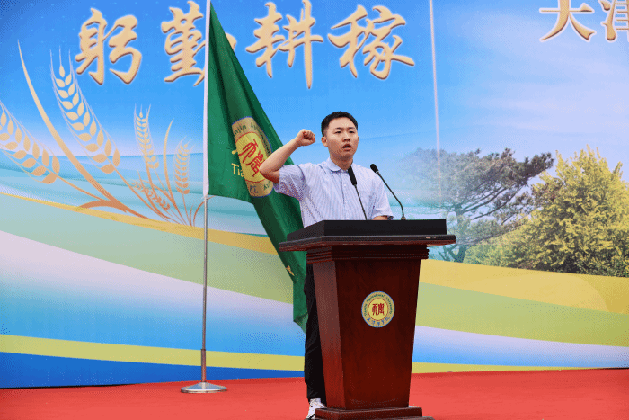 研究生代表经济管理学院农业管理专业王修卿同学带领全体新生入学宣誓,誓以秉承天农校风,谨记天农校训,弘扬天农精神,爱党爱国爱农爱校,立鸿鹄志、求真学问,将小我融入大我,青春献给祖国“三农”事业,为实现中华民族伟大复兴的中国梦而努力奋斗。
