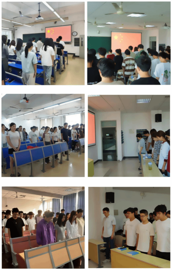国歌唱毕,全体肃立,向为中国人民解放事业和共和国建设事业英勇献身的烈士默哀,一同缅怀革命先烈不朽功勋。
