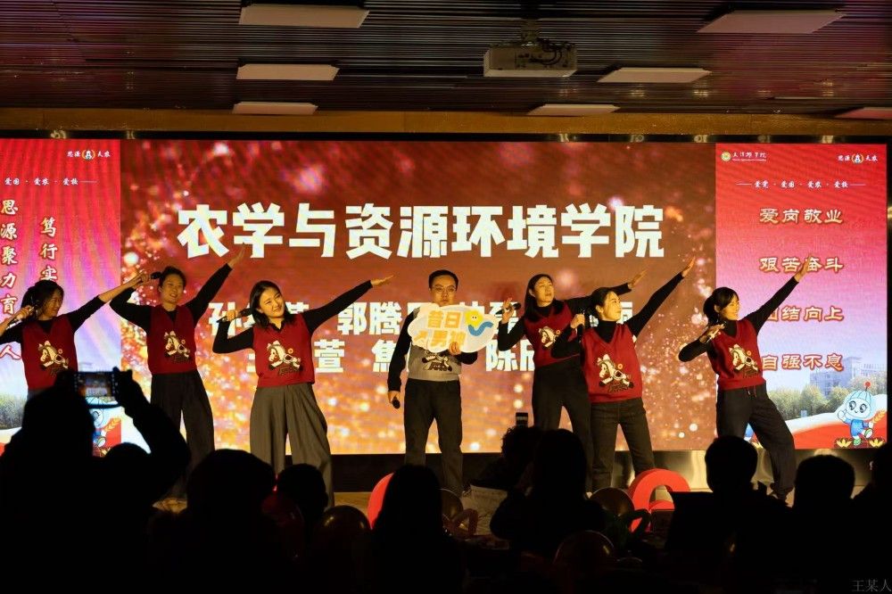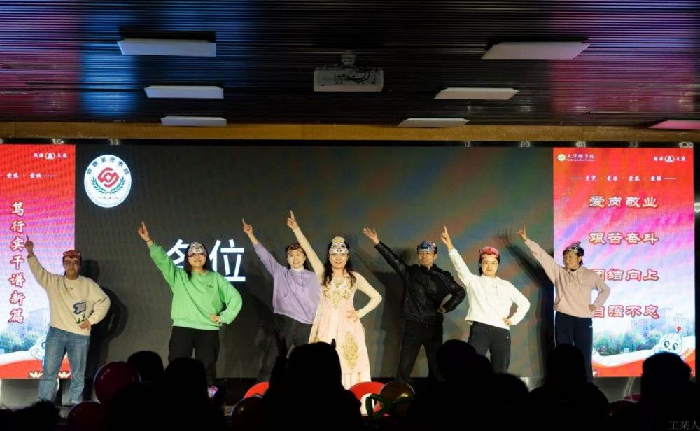 后续节目同样亮点十足、各具特色。校团委、研工部、工程技术学院、食品科学与生物工程学院联合表演的《学工“声”游记》,通过创意配音改编与合唱结合的形式,重温了学工人与学生并肩同行的温暖瞬间,尽显“追梦合伙人”的默契与温情;经济管理学院的《岁末同心·津农经语活力秀》颠覆辅导员日常工作形象,伴着《疯狂动物城》的欢快节奏舞动全场,展现出活力四射的另一面;校团委、研工部、食品科学与生物工程学院、工程技术学院再度携手带来歌曲《奔跑》,唱出了教师扎根育人一线、与学生并肩逐梦的昂扬斗志。人文学院的《像你这样的朋友》以轻快节奏诠释陪伴真谛,致敬每一位在学生迷茫时倾听、成长中引领的辅导员;水产学院的深情朗诵《守望蔚蓝,筑梦天农》,彰显了辅导员作为学生“领航灯”与“守护者”的责任担当;园艺园林学院的合唱《相亲相爱》,如园丁守护花木般,传递出辅导员队伍互帮互助、团结一心的温暖情谊。
