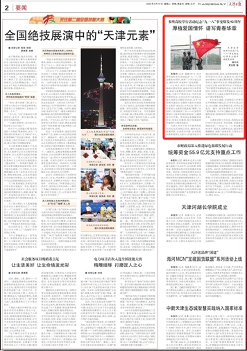 2023年9月19日,天津日报第2版要闻报道,我校在东、西两校区同时举行“铭记历史 勿忘国耻 思源奋进 强国有我──纪念‘九一八’事变爆发92周年”爱国主义教育活动,通过集体脱帽默哀、国旗下的演讲等,引导学生们赓续英烈精神、汲取奋进力量。