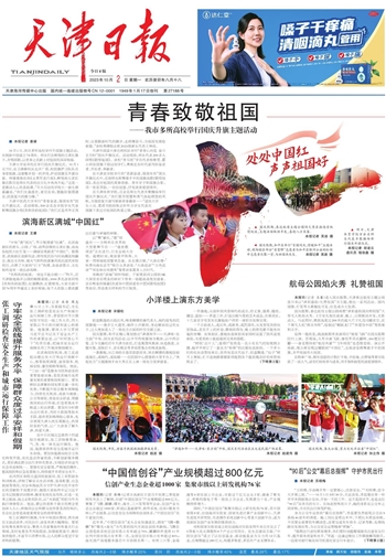天津中医药大学举行“青春奋进,强国有我”国庆升旗仪式。活动现场,500余名各学院学生代表挥舞国旗合唱《我和我的祖国》。“我们正是风华正茂时,应紧跟新时代的脚步,去拼搏奋斗,为祖国发展绘新篇。”该校勇搏励志班2023级新生代表王坤说。