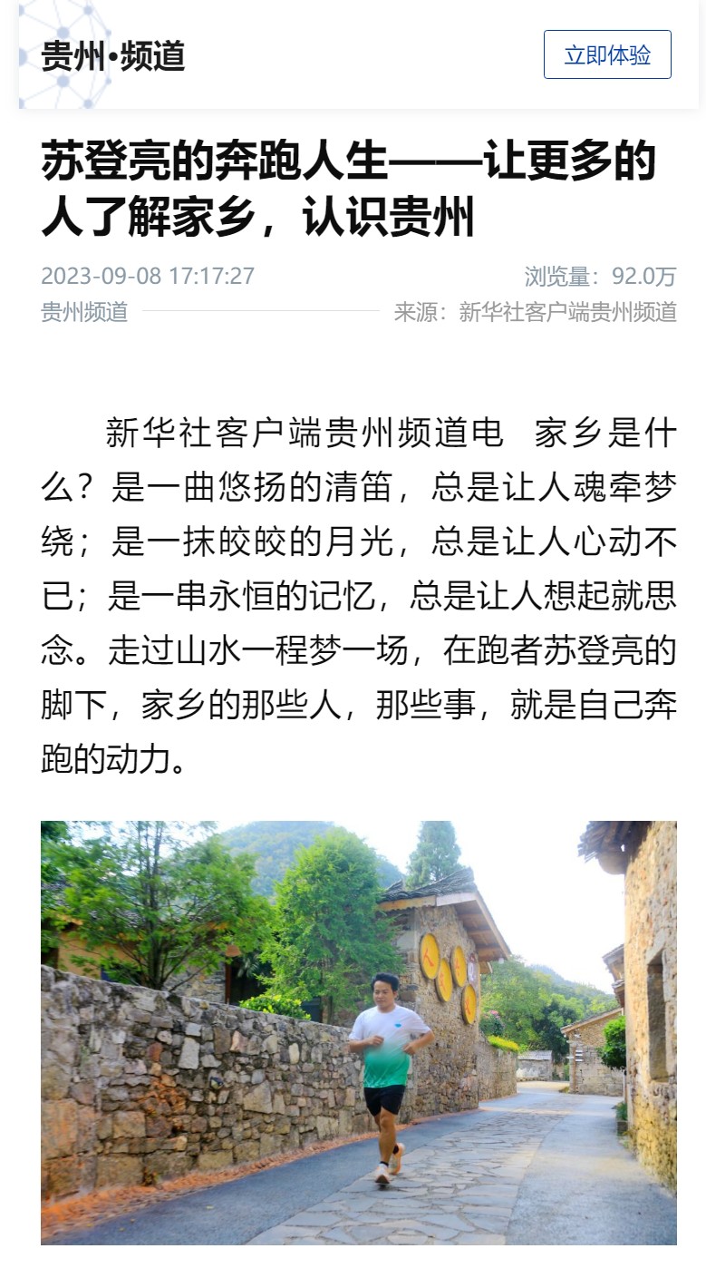 2023年9月8日,新华社客户端以《苏登亮的奔跑人生——让更多的人了解家乡,认识贵州》为题,报道我校校友苏登亮以体育促交流,引客入黔,让更多的人走进贵州,了解贵州,认识贵州。