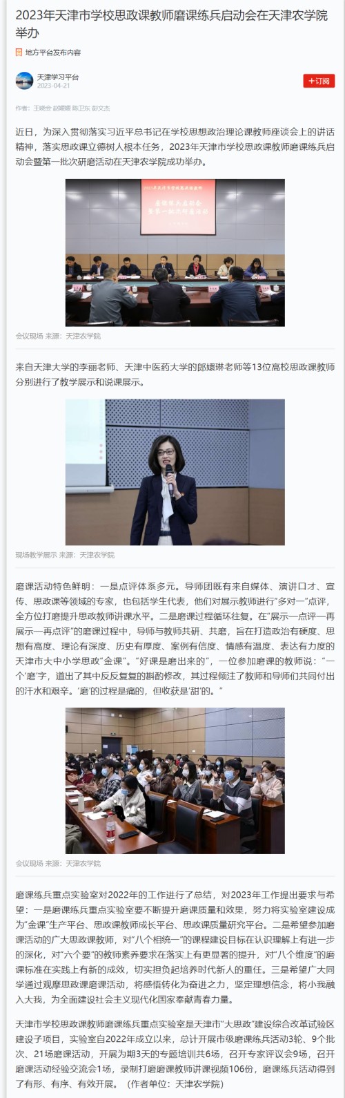 学习强国报道2023年天津市学校思政课教师磨课练兵启动会在我校举办