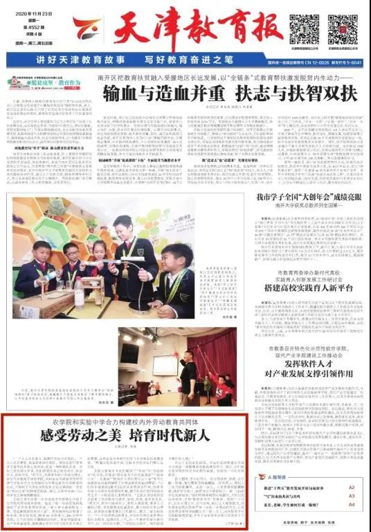 天津教育报:农学院和实验中学合力构建校内外劳动教育共同体——感受劳动之美 培育时代新人