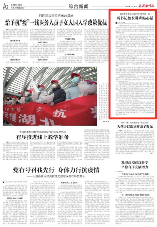 天津教育报:我市多所高校上线非常时期特殊一课——听书记校长讲讲贴心话