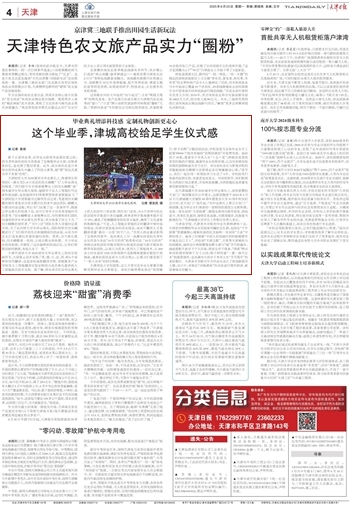 2025年6月23日,《天津日报》第04版以《这个毕业季,津城高校给足学生仪式感(图)》为题,报道我校赠给毕业生的独家珍藏纪念礼物,包括在“千年瓷都”景德镇精心烧制而成的纪念碗和一双刻有“天农”字样的筷子。碗身上印制着“中国人的饭碗任何时候都要牢牢端在自己手上”,并绘刻“天津之眼”、天塔等天津地标与校园建筑,碗体设计将稻穗等农耕元素与“福”字巧妙融合,碗底搭配天农学子个人印章,将农业学子使命、“津派”特点和母校情怀熔铸于方寸之间;筷子则传递“一箸一饭不忘本”的感恩情怀,也充满对天农学子未来人生“节节高升”的美好期许。