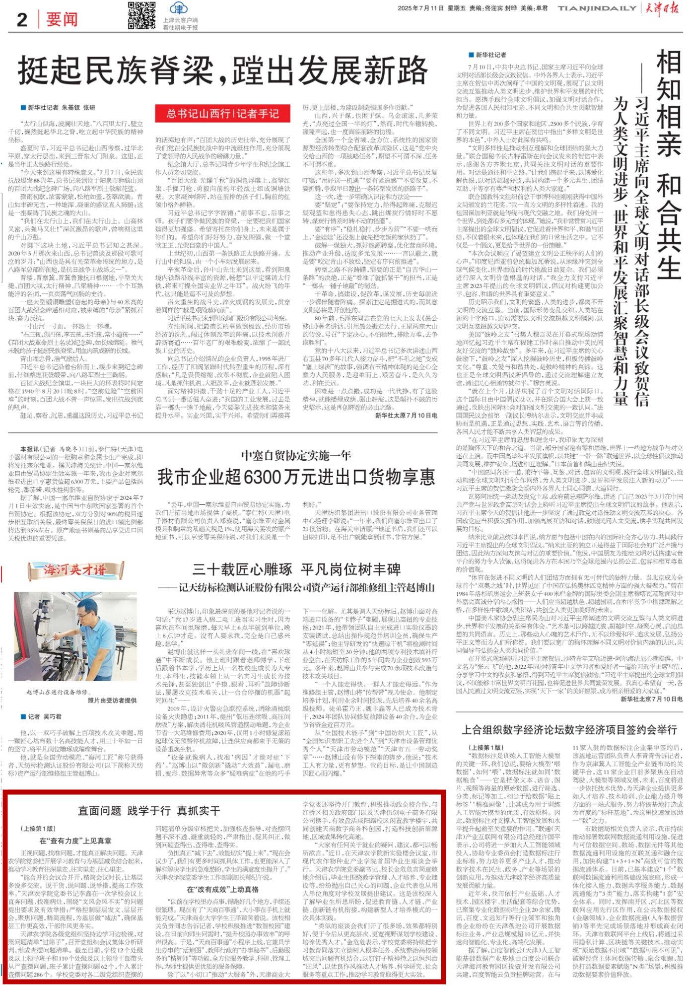2025年7月11日,《天津日报》、津门教育公众号报道,深入贯彻中央八项规定精神学习教育开展以来,我校把学习教育作为重大政治任务,认真谋划安排、精心组织实施,以更高标准更实举措一体推进学查改,不断将学习成果转化为推动教育事业高质量发展的生动实践。