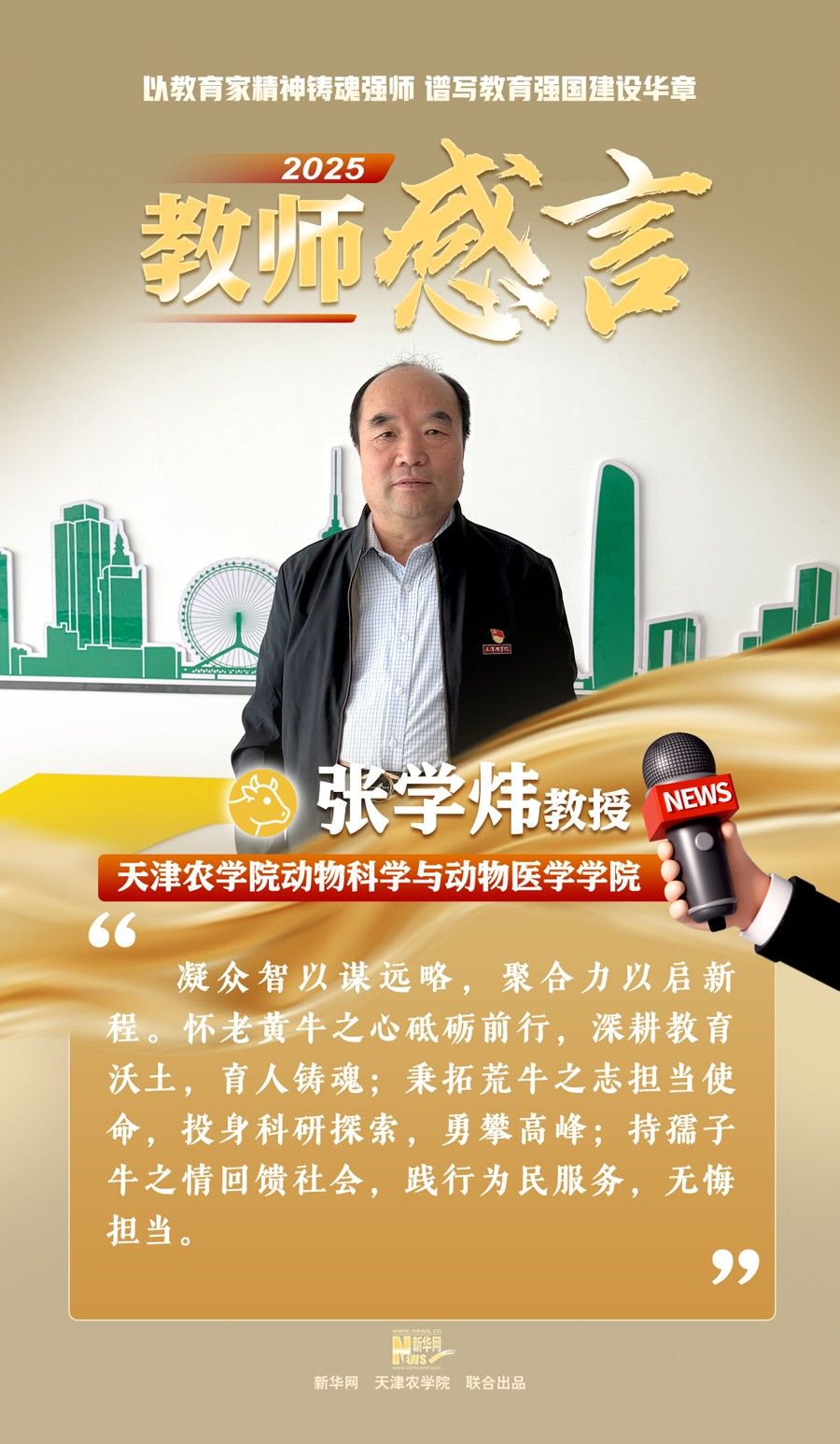 2025年9月10日,新华网刊发我校动物科学与动物医学学院张学炜教授教师节感言。
