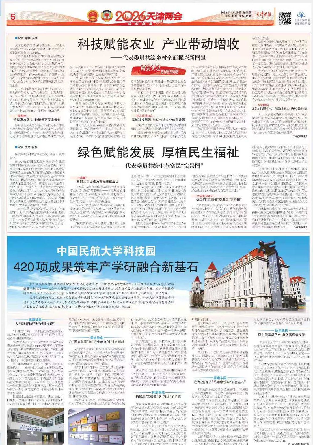 2026年1月29日,《天津日报》第05版报道,市人大代表,我校农学与资源环境学院教授、天津市蔬菜产业技术体系食用菌岗位专家班立桐说,农业科技创新是驱动农业现代化、筑牢粮食安全防线、实现乡村全面振兴的核心引擎。他建议,进一步加大财政支持力度,建立稳定的资金投入长效机制,为我市现代农业高质量发展厚植科技根基。