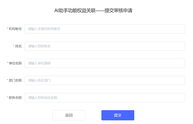 输入机构账号tjnxyAI及个人信息提交申请,管理员审核通过后实现关联。