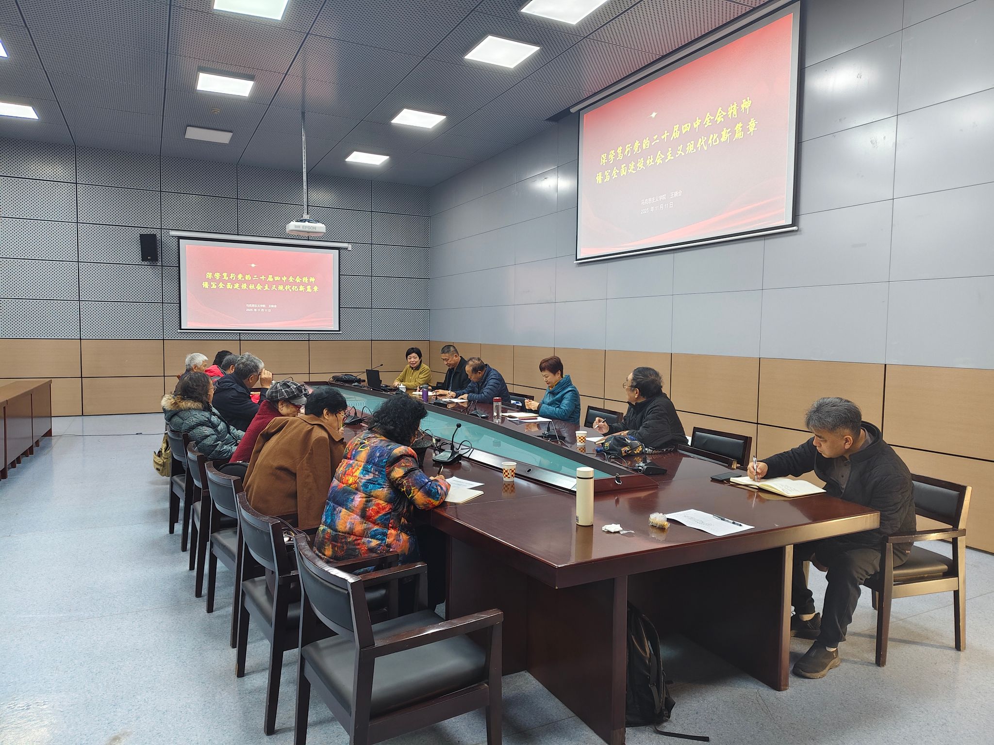 会议邀请马克思主义学院王晓会副教授为老同志作题为《深学笃行党的二十届四中全会精神 谱写全面建设社会主义现代化新篇章》宣讲报告,就党的二十届四中全会公报核心内容进行辅导解读,系统阐述了党的二十届四中全会召开的重大意义与核心要义,引导老同志深刻领悟党的二十届四中全会精神。