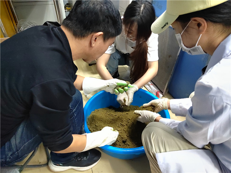 对虾科技小院首席专家王庆奎指导学生制备对虾功能饲料