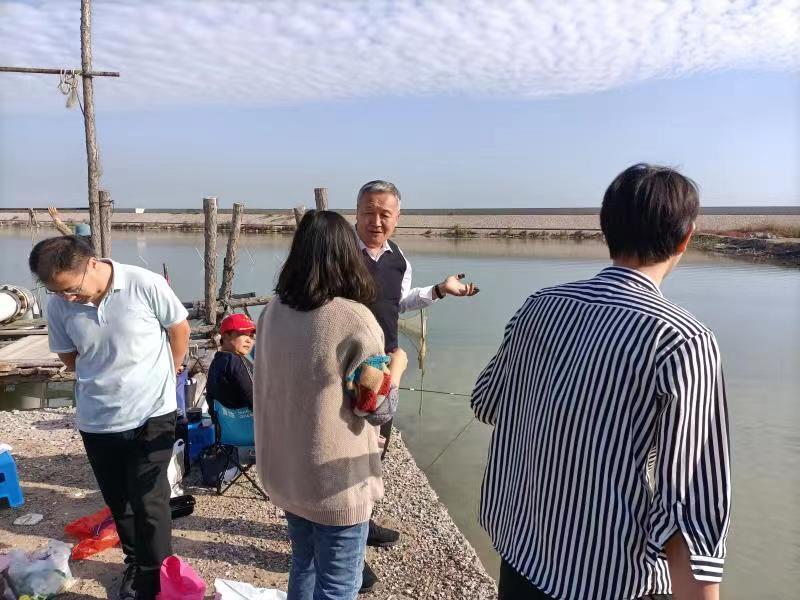 贝类科技小院首席专家郭永军指导塘外投放贝苗