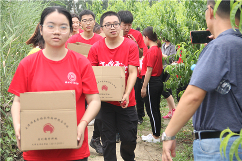 社会实践服务团由学院“燎原星火”志愿服务队成员组成,这是一支以助力脱贫攻坚为立身使命的大学生志愿队伍。他们在校园内帮果农宣传农产品、接收销售订单,打造“爱心代售,精准助农——鲜果进校园”项目,取得了良好的反响。此次同学们不仅带去400余斤鲜桃订单,还主动帮助果农采摘、称重、封箱,及时将桃子派送到客户的手中,助力农户精准对接。同时,队员们结合村里种植桃树的情况,咨询我校果树专家整理了桃树病虫害防治手册进行宣传,获得村民们和驻村帮扶组的一致好评。