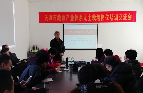 2月17日,李树和老师和裴毅老师在西青区张家窝镇天兴佳业种植基地举行无土栽培技术培训会,参会人员为各基地技术人员和无土栽培爱好者共计36人。两位老师主要讲解了蔬菜种植的污染情况,水培蔬菜的优势,水培蔬菜的种植技术,重金属污染问题等内容,同时在种植现场讲授了水培蔬菜的种植操作流程和相关技术。