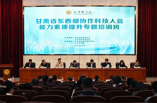 10月24日,“2023年甘肃省东西部协作科技人员能力素质提升专题培训班”在我校举行开班仪式。甘肃省科技厅二级巡视员梁云升,天津市科技局二级巡视员刘惠忠,甘肃省科技厅农村科技处处长王芳,甘肃省科技情报所副所长刘勇,天津市科技局社农处处长王祯祥,天津市农业农村委(乡村振兴局)科教处处长李永森,我校党委常委、副校长(主持工作)金危危,校党委常委、副校长王繁珍出席活动。